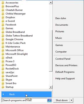 - Place your mouse pointer on top of the “All Programs” menu just above the search box and click it to reveal more programs installed on your machine.