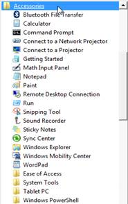 - Look for “Accessories” folder on the list of programs then click it to reveal more system components.