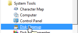 - From the items that appear under the “Accessories” folder, look for another folder labeled “System Tools”. You should be able to find the “Disk Cleanup” utility, click it.