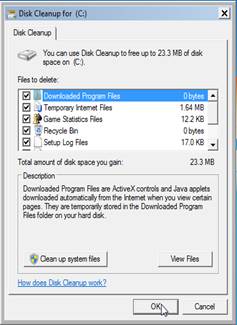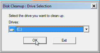 - You will then be prompted to select the drive (C: or D:) that you want to cleanup. The Windows OS is installed on drive C: by default unless you changed the assigned letters then click OK.