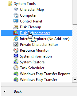 - Do the same process. Click the “Start” button, click “All Programs” and look for the “Accessories” folder, click it, go to “System Tools” and look for the “Disk Defragmenter” system utility. Click it to initiate the defragment process.