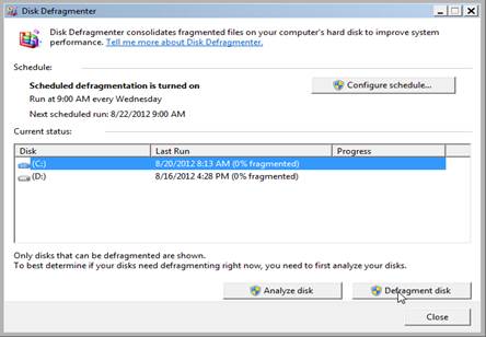 Files and bits of data have the tendency to be scattered all over your drive as you install programs and do some tasks on your computer. This is a common cause of slowing down, crashes and errors. It is important that you defragment your drive on a regular basis to ensure that all related files are stored in one area on your hard disk.
